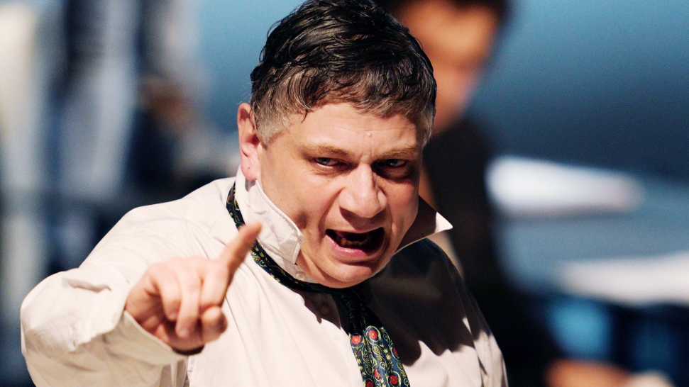 «Он репетировался очень коротко, в районе полутора месяцев. И когда через три недели я понял, что мы не встаем, а сидим за столом и читаем, у меня случился практически припадок — а когда же все будет? С этим вопросом я, конечно, обратился к мастеру: „Премьера через пару недель, мы будем вставать?“ Его ответ был таков: „Занимайся текстом“», — рассказал артист Smart Power Journal.
