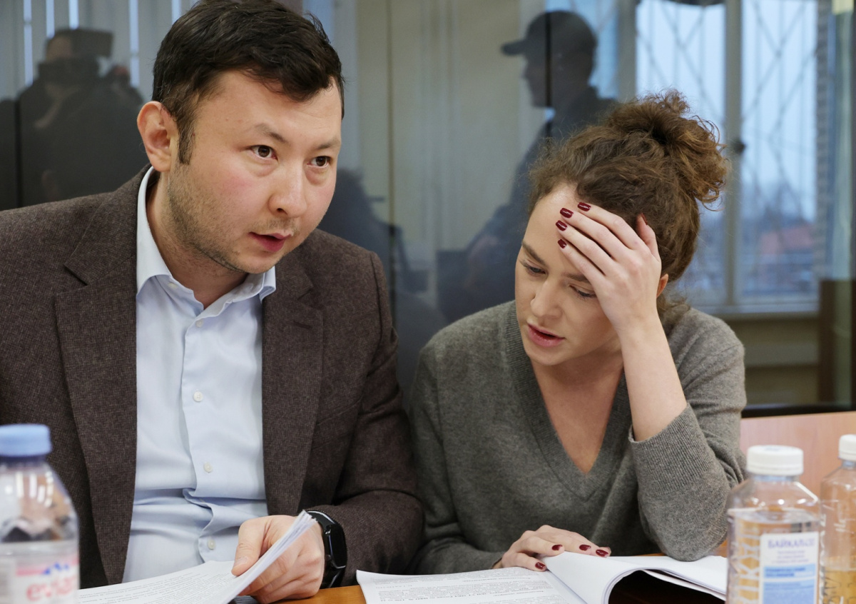 Россия. Московская область. Домодедово. Актриса Аглая Тарасова и ее адвокат Жанат Бекетов на заседании в Домодедовском городском суде. Тарасова обвиняется по статье о контрабанде наркотиков