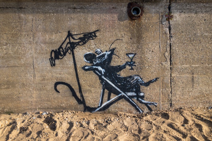 Не успел уличный художник Бэнкси подтвердить авторство 10 своих работ, обнаруженных в городах на восточном побережье Англии, как одну из них изуродовали. Речь идёт о граффито, на котором была изображена довольная крыса, лежащая с коктейлем на шезлонге, сообщает Sky News.