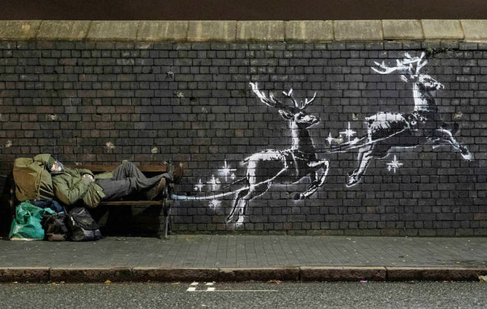В Бирмингеме появились рождественские граффити от Бэнкси