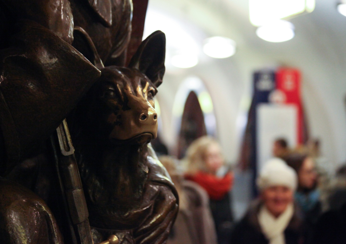 Скульптурные композиции на этой станции метро стали жертвами москвичей и туристов несколько десятилетий назад. Сначала традиция «потереть нос» собаке существовала только в рядах студентов, но со временем распространилась почти на всех спускающихся в подземку. В результате у бронзовых животных стёрли носы. Но суеверных пассажиров это не останавливает. Они не прекращают тереть другие части изваяний зала станции.