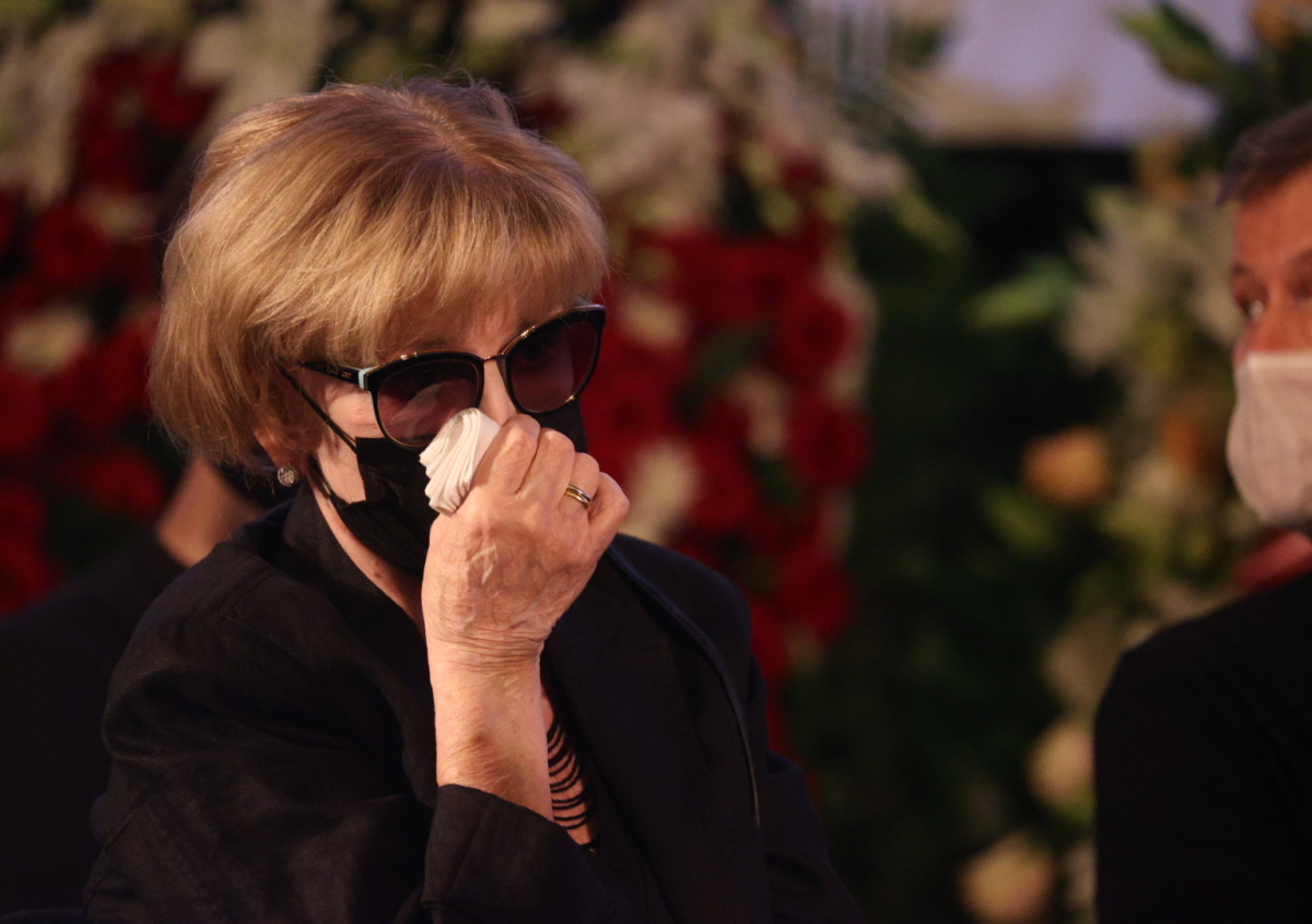 Вдова Владимира Меньшова Вера Алентова пришла на похороны мужа. Как заметил корреспондент NEWS.ru, на прощании с покойным супругом в Доме кино актриса постаралась максимально скрыть лицо от журналистов: Алентова надела большие тёмные очки и медицинскую маску чёрного цвета.