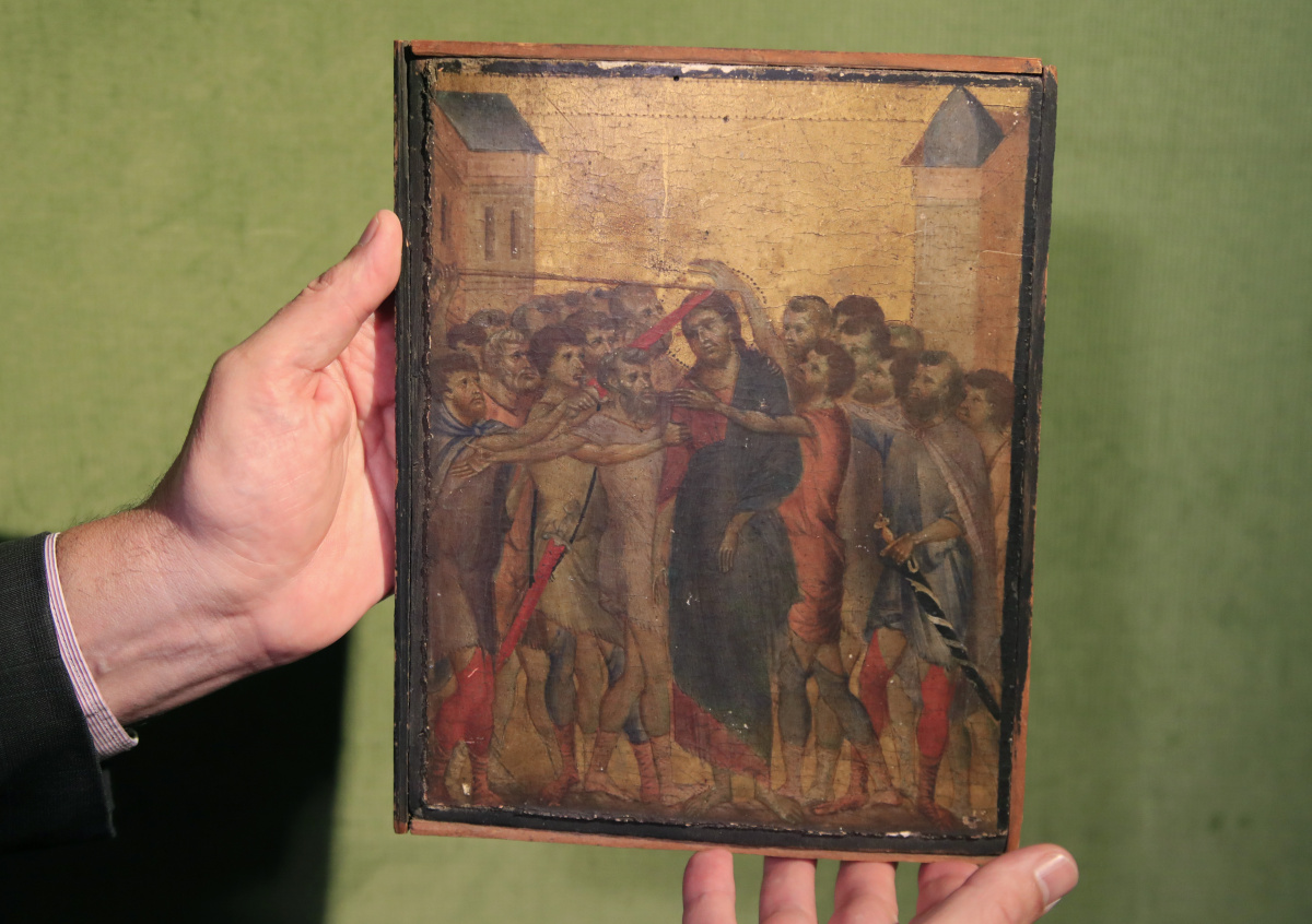 Изображение оказалось частью диптиха кисти флорентийского живописца Ченни ди Пепо, известного как Чимабуэ. Он был одним из главных мастеров итальянской живописи периода Проторенессанса. Специалисты считают, что ди Пепо написал восемь сцен о Христе. Две из них представлены в Национальной галерее в Лондоне и в коллекции Фрика в Нью-Йорке.