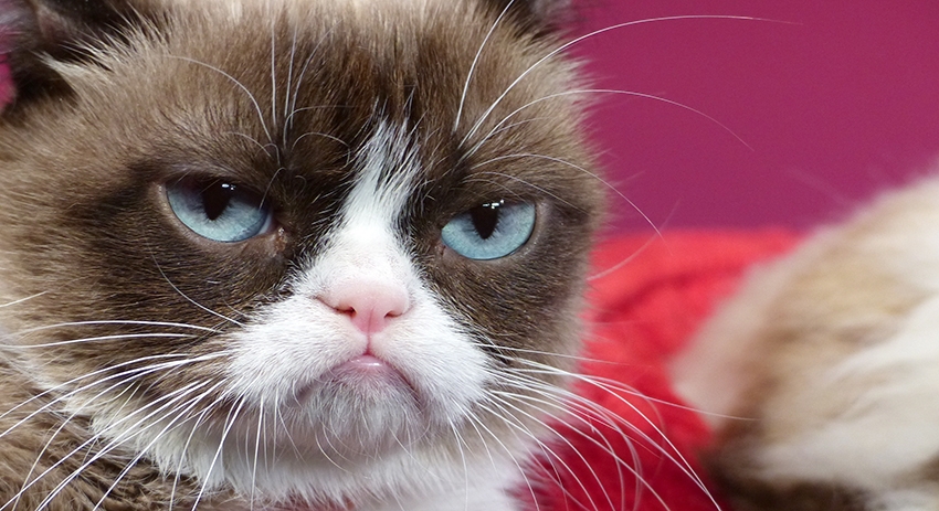 Его зовут Сердитый Кот (Grumpy Cat). Его настоящее имя — Соус Тардар (Tardar Sauce). Он кот, и при этом нереально крут: на его страницу в Facebook подписаны миллионы. Своей популярностью Сердитый Кот обязан трагической внешности: он очень маленький, углы его рта опущены вниз, и поэтому кажется, что он скорбит, взгляд у него печальный и усталый. Это связано с врождённой карликовостью и неправильным прикусом, но со стороны Сердитый Кот крайне забавен. В сентябре 2012 года его хозяйка, Табата Бундесен, разместила фотографию питомца на сайте Reddit — и Сердитый Кот взлетел, как Бузова.