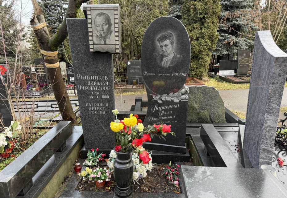 Рыбников и Ларионова похоронены на Троекуровском кладбище. Их могилы находятся в ухоженном состоянии. На них — букеты живых и искусственных цветов, россыпь конфет ирисок, которые, по словам поклонников, любил Рыбников. Также NEWS.ru заметил трогательную мягкую игрушку — собачку с красным сердечком и признанием в любви.