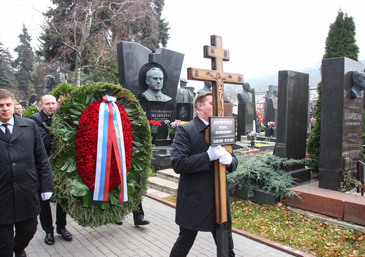 Похороны Игоря Кириллова на Новодевичьем кладбище в Москве закончились казусом, передаёт журналист NEWS.ru. Могила диктора советского Центрального телевидения оказалась совсем рядом с захоронением народной артистки СССР Элины Быстрицкой (1928–2019). Сотрудникам кладбища, которые опускали гроб с телом Кириллова в могилу, было негде развернуться, и они несколько раз наступили на памятник актрисе.