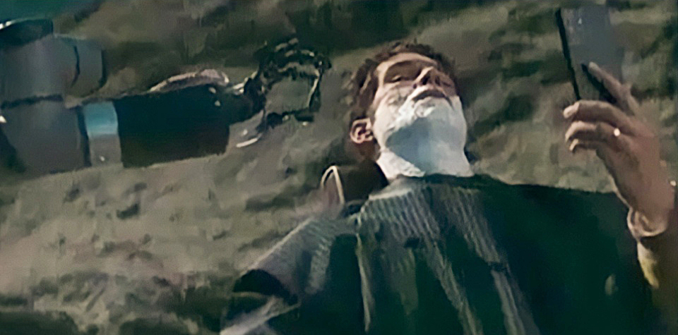 На кадрах опубликованного ролика заметно, как звезда нервничает, когда лезвие приближается к его шее. В этот момент человека рядом нет — парикмахер, управляющий при помощи специальной перчатки с датчиками роботом, находится за 250 миль от актёра.