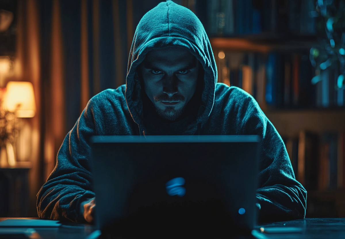 Киберпреступник у ноутбука