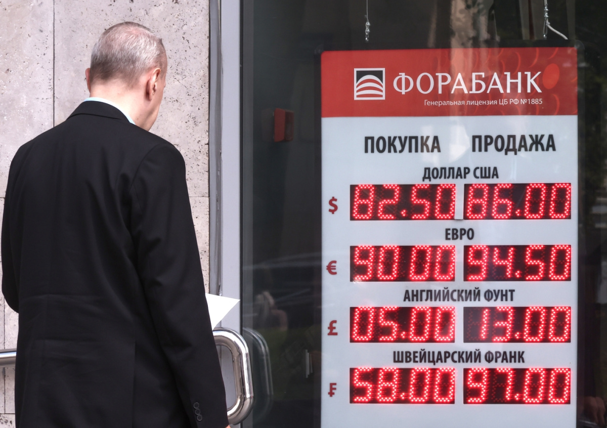 В начале торгов на МосБирже в понедельник доллар и евро резко выросли по отношению рублю. Курс доллара в моменте поднимался выше 87 руб. впервые с марта 2022 года, достигнув 87,23 руб. (+3,8% к концу пятницы), курс евро доходил до 95,28 руб. (+3,4%), курс юаня — до 12 руб.(+3%).
