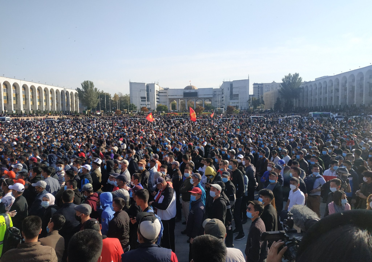 В республике 5 октября начались протестные акции после оглашения предварительных итогов парламентских выборов. Согласно результатам голосования, в законодательный орган страны прошли только проправительственные и центристские партии, а ещё 11 не смогли преодолеть пороговый барьер в 7%. Недовольные результатами жители вышли на митинги, после чего захватили мэрию Бишкека, здания парламента и правительства республики, помещения СИЗО Государственного комитета национальной безопасности.