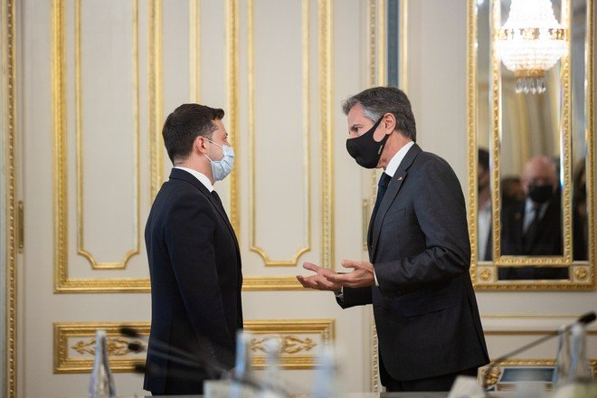 Россия «заплатит калечащую цену», если посмеет напасть на Украину, заявил госсекретарь США Энтони Блинкен в беседе с президентом страны Владимиром Зеленским. Госсекретарь прибыл в страну накануне и успел также провести переговоры с главой МИД Украины Дмитрием Кулебой. Во время разговора с Зеленским Блинкен вновь подчеркнул, что если Россия выберет путь дальнейшей агрессии против Украины, США вместе с союзниками и партнёрами, кроме ввода экономических санкций, пересмотрят присутствие НАТО в союзных странах.