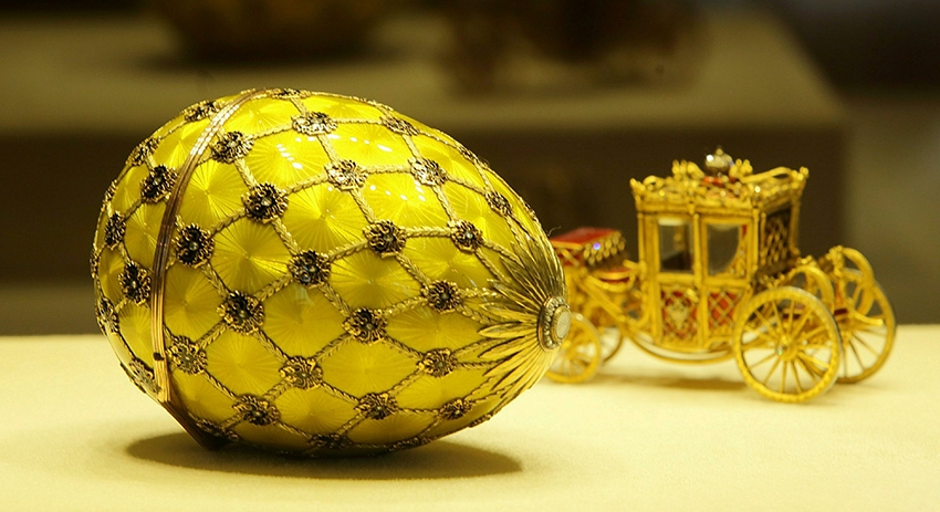 Лучшим пиаром для бизнеса Фаберже стало внимание к его произведениям членов царствующего дома, в том числе, самих императоров, которые заказывали у ювелира в качестве подарков для близких к Пасхе сувениры в виде пасхальных яиц. Первое было создано по заказу Александра III, последнее, перед революцией — Николаем II. Именно эти два знаковых предмета вместе с ещё семью составляли коллекцию Малкольма Форбса — всего в ней было 9 предметов.