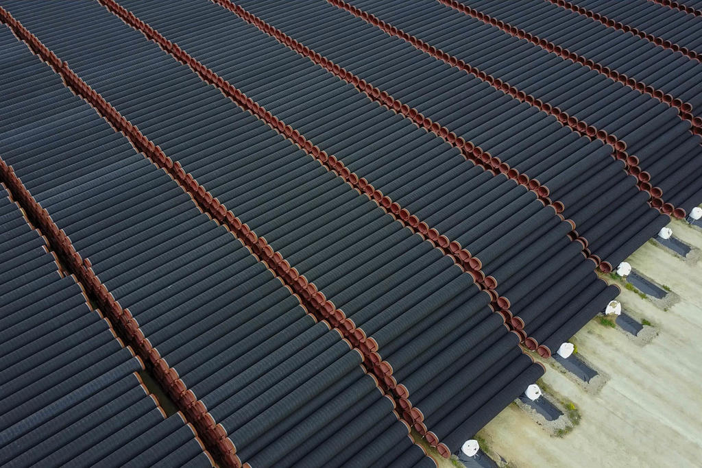Трубы на заводе по обетонированию в Котке, Финляндия 27 сентября 2016 г.