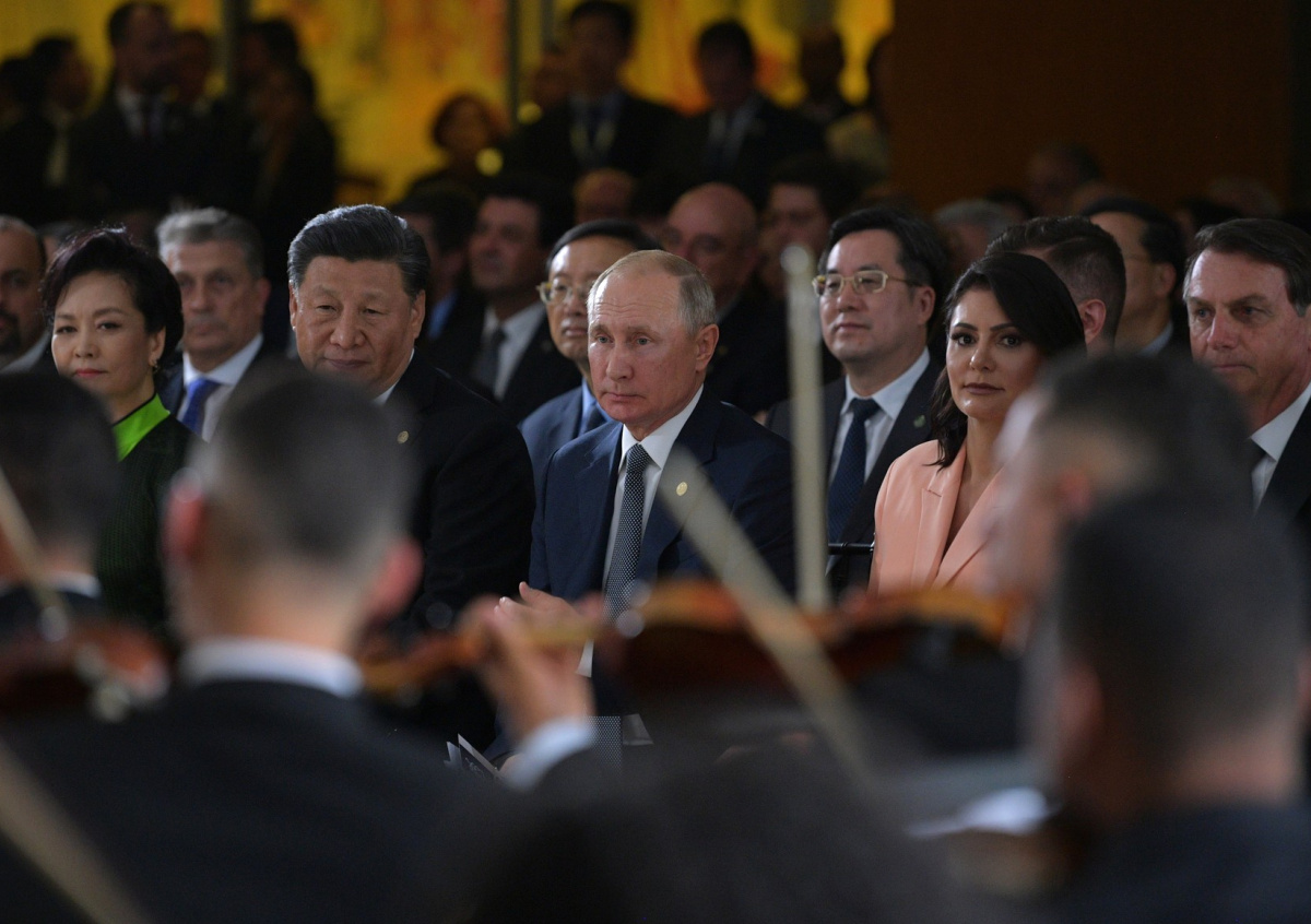 Председатель КНР Си Цзиньпин с супругой Пэн Лиюань, президент России Владимир Путин и президент Бразилии Жаир Больсонаро с супругой Мишель Больсонаро Председатель КНР Си Цзиньпин с супругой Пэн Лиюань, президент России Владимир Путин и президент Бразилии Жаир Больсонаро с супругой Мишель Больсонаро Фото: KORRESPONDENT.NET