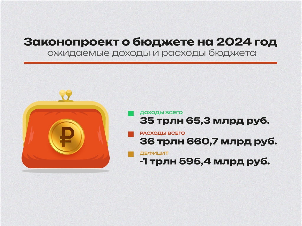 Сегодня в Госдуме начинается работа над бюджетом. Депутаты и министры обсуждают внесенный правительством законопроект о доходах и расходах страны на 2024 год. NEWS.ru сделал инфографику об основных параметрах бюджета, о том, сколько денег и на что потратит государство и как эти расходы изменились по сравнению с теми, что закладывали на 2024-й буквально год назад.
