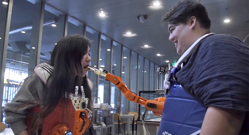 Когда наваливается много дел, мы часто можем мечтать о третьей руке — чтобы успеть сделать что-нибудь ещё. Или хотя бы перекусить. Учёные из Австралии и Индии нашли способ помочь — они придумали и создали роботизированную третью руку, которую можно прикрепить на одежду в районе груди. Это «умное» приспособление само кормит человека — берёт еду и подносит ко рту. Остаётся только жевать и глотать. Правда, есть небольшой подвох: устройство рассчитано на двоих людей и само выбирает, кого накормить первым. Рука умеет распознавать эмоции, поэтому радостного человека она угостит в первую очередь, а грустного или хмурого — во вторую.