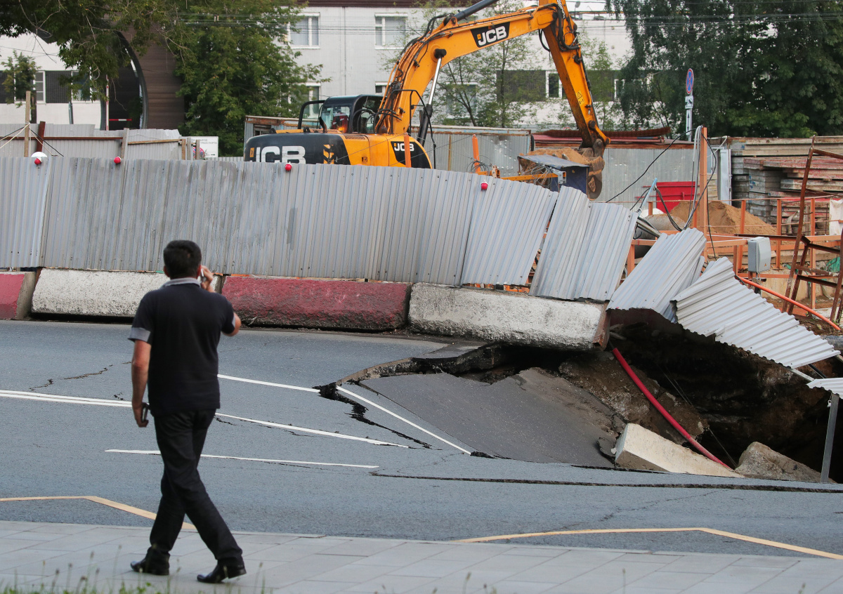 Земляные работы привели к проседанию дорожного полотна на проспекте Маршала Жукова на западе Москвы. Общая площадь провала достигла пяти квадратных метров.