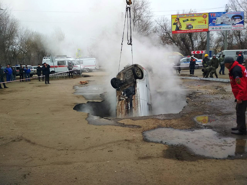 Водитель и пассажир легкового автомобиля погибли в результате ЧП на парковке около одного из магазинов в Пензе. Машина провалилась под землю, грунт просел из-за прорыва трубы горячего водоснабжения.