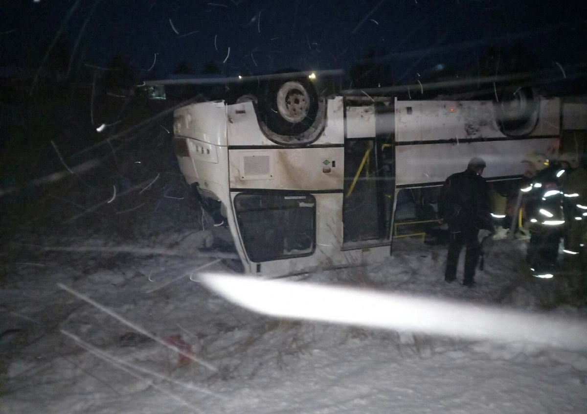 Водитель попытался обогнать впереди идущее транспортное средство. Не справился с управлением, вылетел в правый кювет. Автобус перевернулся и лёг на крышу, — говорится на странице УМВД в социальной сети «ВКонтакте».
