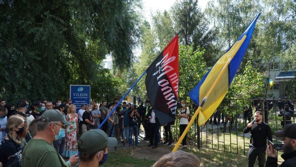 У здания, вокруг которого были усилены меры безопасности, собрались несколько десятков человек. Поддержать протестующих пришли представители организаций «Нацкорпус», «Фрайкора», «Правый сектор» (экстремистская организация, запрещена в РФ). В руках у собравшихся — плакаты «Свободу патриотам» и флаги организаций. Они требуют освободить подозреваемых. За порядком следят сотрудники правоохранительных органов, передаёт издание «Суспільне».