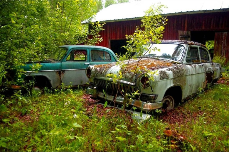 Фотографии старых машин из Советского Союза опубликовали в социальных сетях. Автор сообщил, что автомобили находятся в одном из лесов Финляндии.