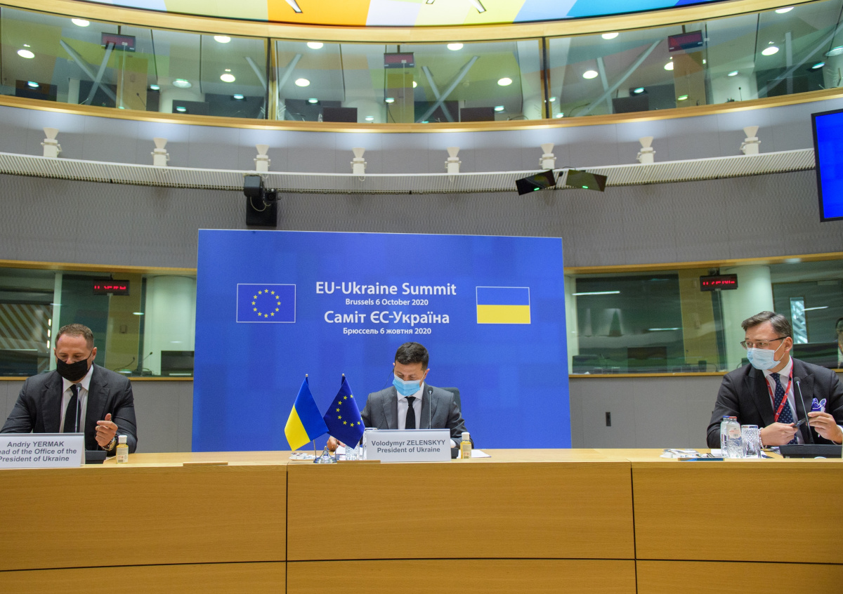 Представители Евросоюза и Украины на совместном саммите выразили озабоченность в связи с присутствием российской военной техники и персонала на территории Донбасса. Они призвали Москву выполнять Минские соглашения.