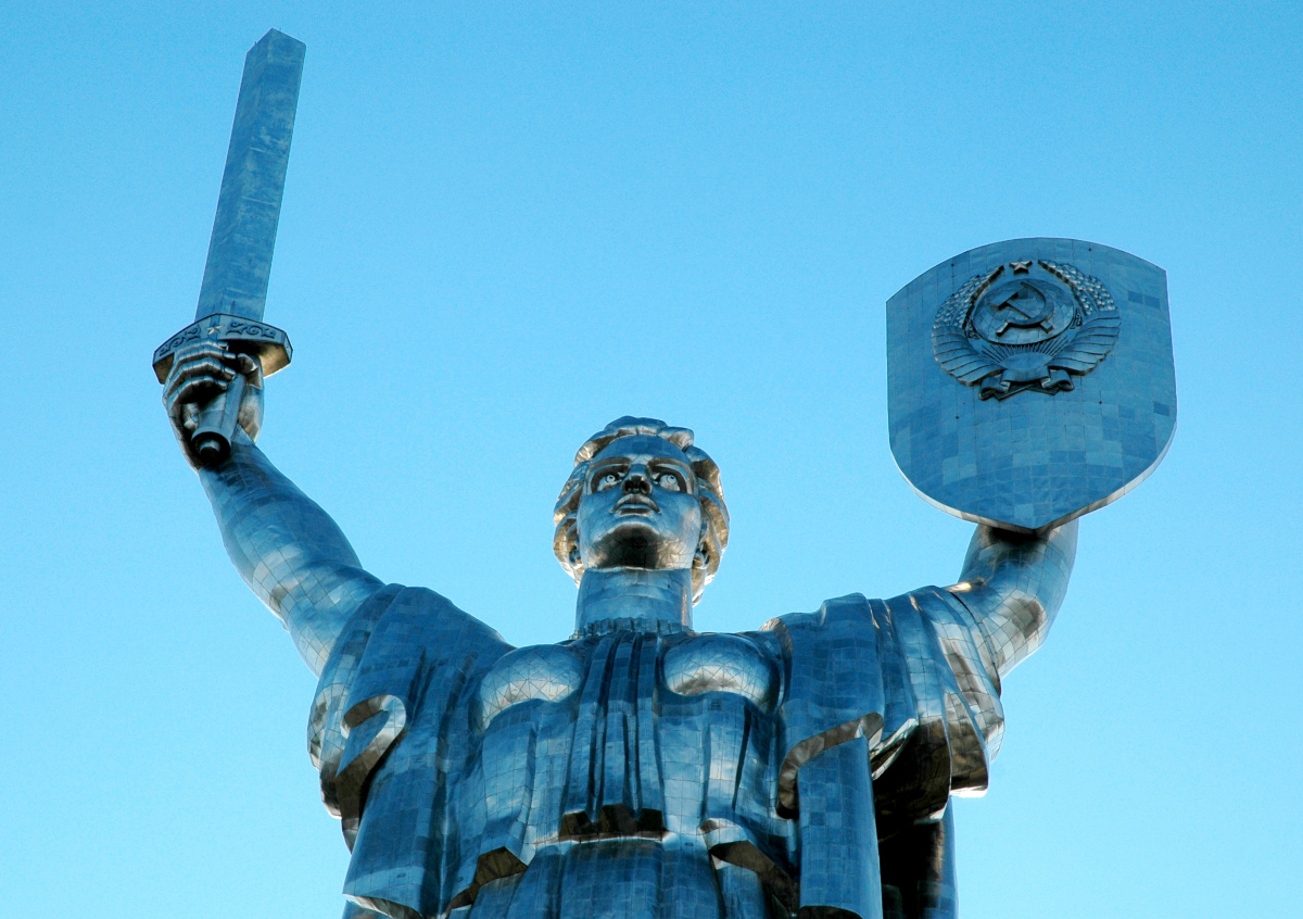 Активисты организации KyivPride запустили дрон с радужным флагом. Коптер повис над памятником «Родины-матери».