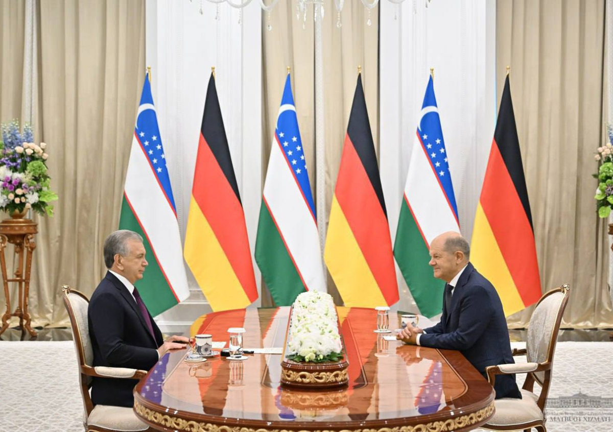 Шольц 15 сентября прибыл в Самарканд с двухдневным официальным визитом. Канцлера на площади Регистан лично встретил Шавкат Мирзиеев.