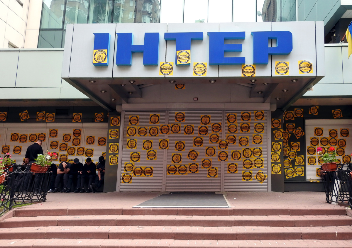 Антироссийская акция прошла у здания компании «Национальные информационные системы» в Киеве, где производятся программы для «Интера». Несколько десятков участников акции «Выключи российское» требуют закрыть телеканал за показ праздничного концерта ко Дню Победы.