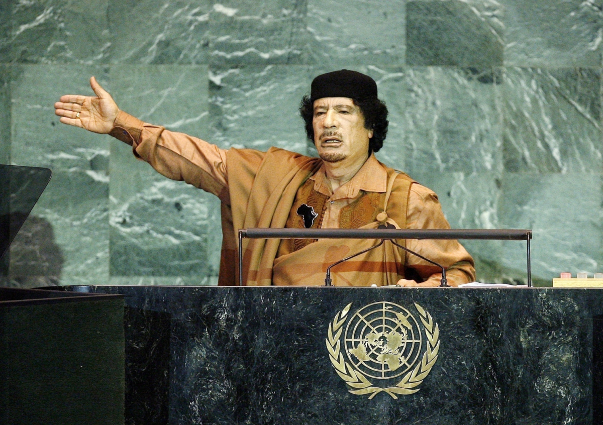 Муаммар Каддафи — бывший глава Ливии, правивший страной на протяжении 42 лет. В 2011 году после серии антиправительственных выступлений он был отстранен от власти. В октябре того же года Каддафи убили в окрестностях города Сирт.
