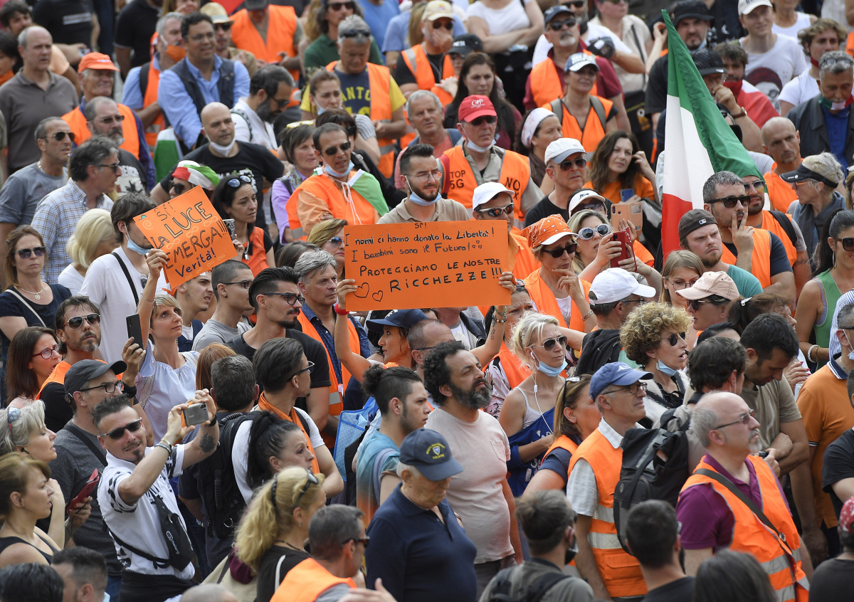 В начале июня в Риме и Милане состоялись акции протеста, собравшие по несколько сотен людей. Они были одеты в оранжевые жилеты и, вопреки указаниям властей, не носили медицинские маски и не держали дистанцию. Это объясняется тем, что среди «оранжевых жилетов» много «ковид-диссидентов». Они отрицают существование коронавируса, а ограничительные меры считают попыткой властей отнять у них гражданские права. По данным СМИ, среди собравшихся было немало и тех, кто не считает коронавирус выдумкой, но решил высказаться за отставку правительства Джузеппе Конти. Лидер движения Паппалардо призывал собравшихся не носить медицинские маски, так как он считает угрозу от COVID-19 надуманной.