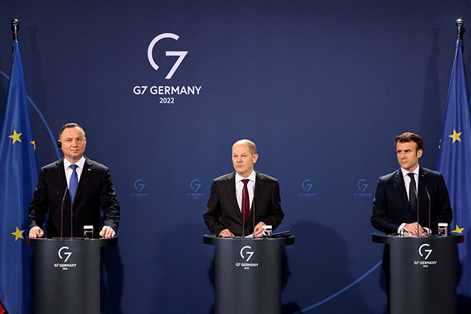 Лидеры ФРГ, Франции и Польши Олаф Шольц, Эммануэль Макрон и Анджей Дуда призвали Россию снизить напряжённость у границ Украины. Политики считают, что пришло время начать диалог по безопасности в Европе, отмечается в коммюнике по итогам саммита «Веймарского треугольника» в Берлине, сообщает РИА Новости.