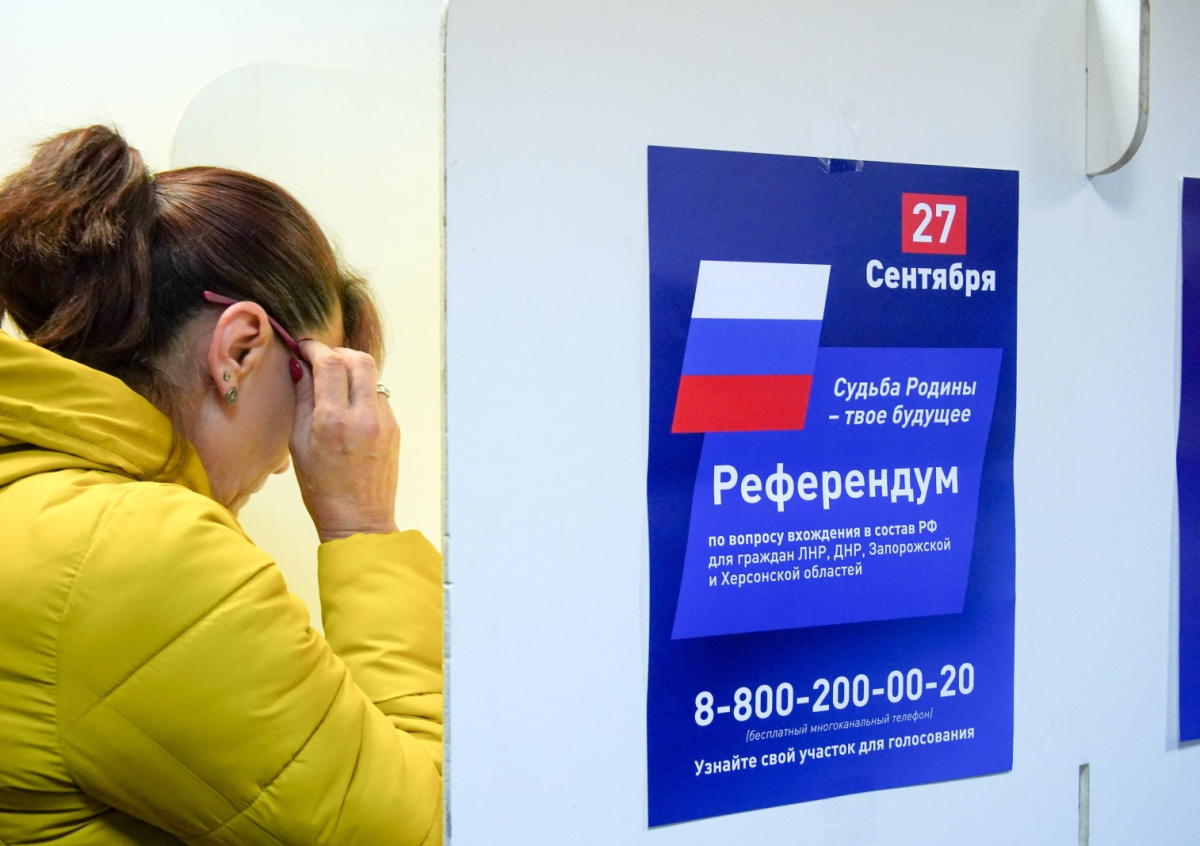 Голосование на референдумах о вхождении ДНР, ЛНР, Херсонской и Запорожской областей в состав России Голосование на референдумах о вхождении ДНР, ЛНР, Херсонской и Запорожской областей в состав России Фото: Александр Авилов/АГН «Москва»