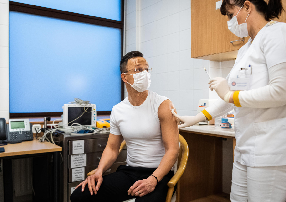 Глава МИД Венгрии Петер Сиярто поставил себе прививку от коронавируса российского производителя «Спутник V».