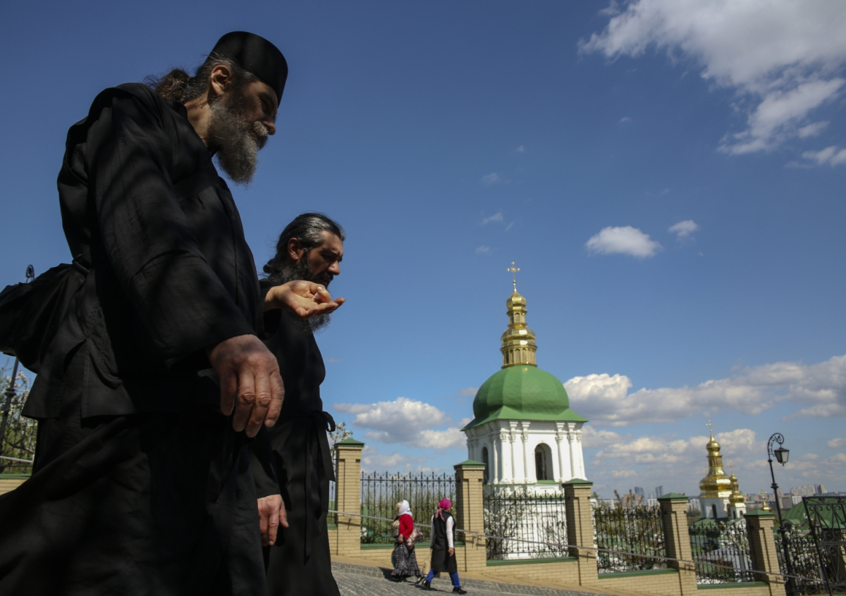 Монахи проходят мимо храма Киево-Печерской лавры Монахи проходят мимо храма Киево-Печерской лавры Фото: Sergii Kharchenko/ZUMAPRESS.com/Global Look Press