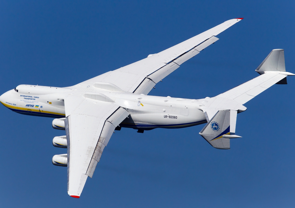 Ан-225 «Мрия» — самое большое в истории грузовое воздушное судно с максимальной грузоподъемностью в 253,8 тонны. Самолет был собран в единственном экземпляре в 1988 году на Киевском механическом заводе. Создавался для нужд космической программы «Буран».