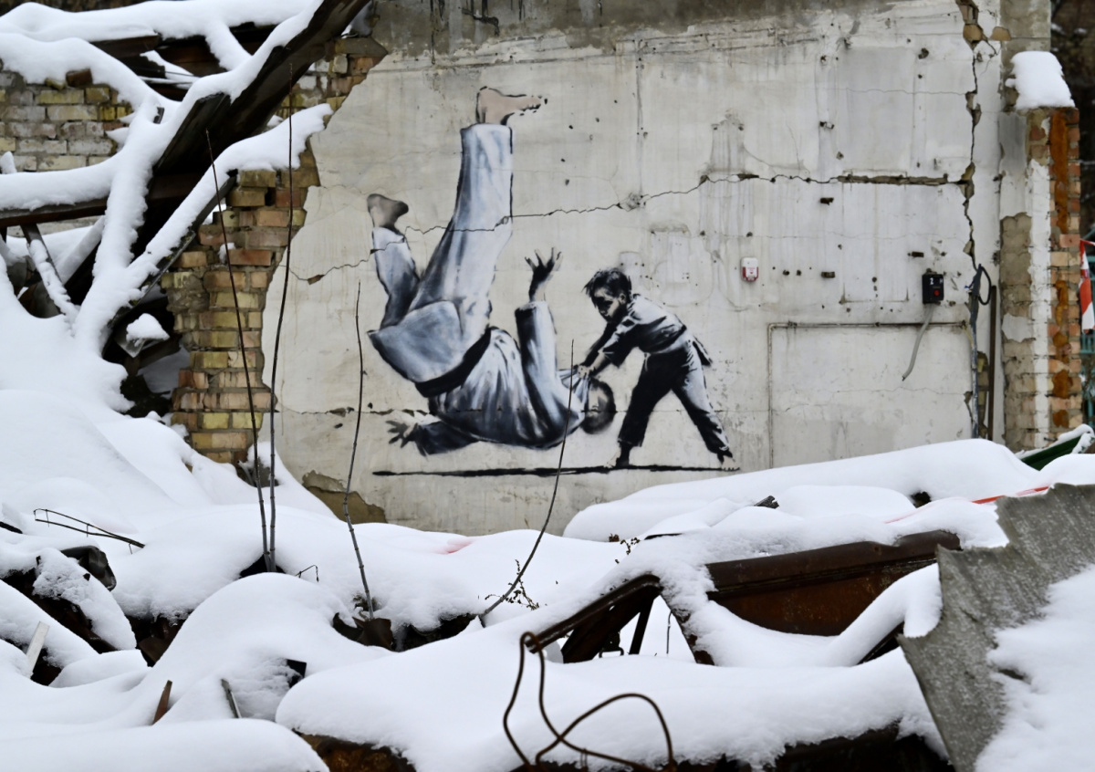 На Украине придумали, как защитить от вандалов и воров уличные граффити художника Бэнкси, передает РБК. Для защиты работ художника в Бородянке, Ирпене и Горенке на них установили защитные конструкции с круглосуточным беспроводным подключением к охранной компании.