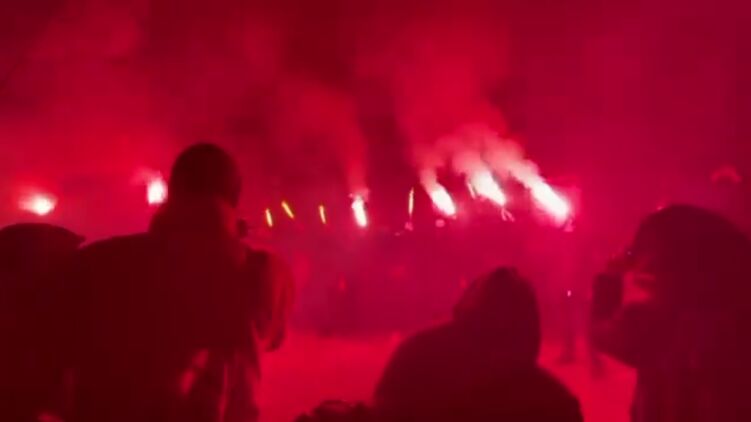 Националисты забросали фаерами здание телеканала «НАШ» в Киеве