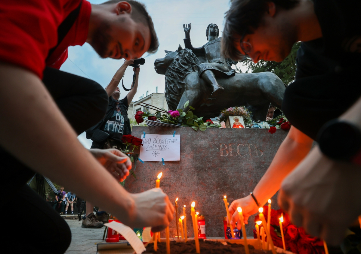 Участники акции «Свеча памяти», посвященной погибшей журналистке Дарье Дугиной Участники акции «Свеча памяти», посвященной погибшей журналистке Дарье Дугиной Фото: Михаил Терещенко/ТАСС
