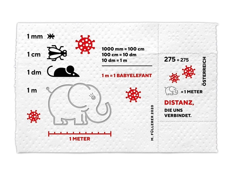 Почта Австрии выпустила марку из трёхслойной туалетной бумаги. Она посвящена соблюдению социальной дистанции во время пандемии COVID-19.