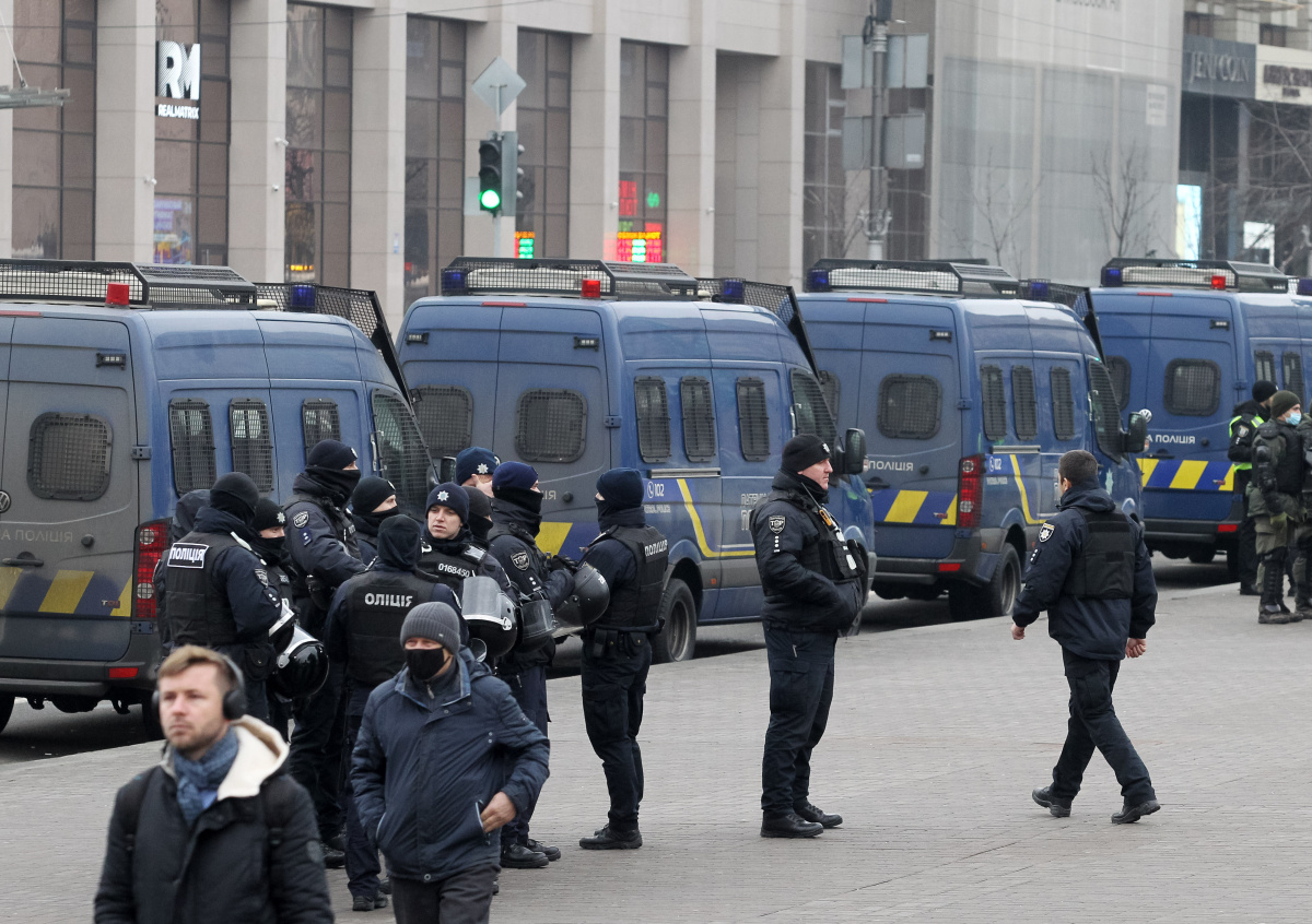 Полицейские и военные усилили меры безопасности в центре Киева на фоне анонсированного шествия националистов, предположительно, по случаю 112-й годовщины со дня рождения Степана Бандеры.