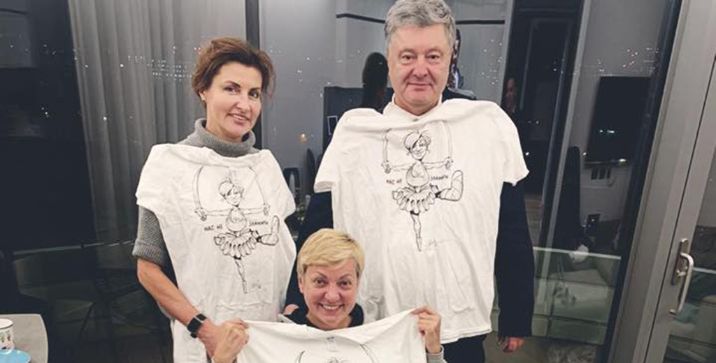 Экс-президент Украины Пётр Порошенко приехал в Лондон к бывшей главе Национального банка Украины Валерии Гонтаревой, дом которой сожгли неизвестные под Киевом. Он вручил женщине футболку, на которой изображена карикатура на неё.