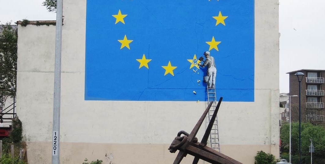 В английском городе Дувр закрасили одну из работ британского уличного художника, известного как Бэнкси, посвящённую Brexit.