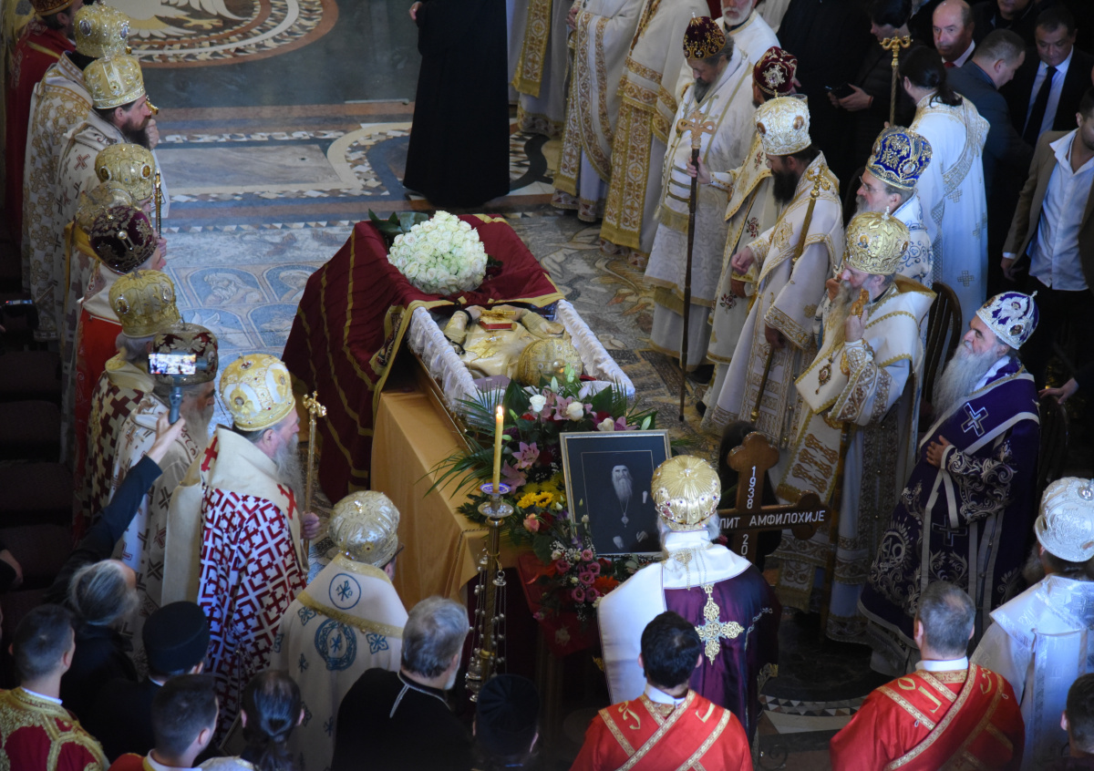 Церемония началась утром 21 ноября. Тело владыки под колокольный звон перенесли из здания Сербской патриархии в расположенный через дорогу соборный храм Святого Архангела Михаила. Гроб с покойным закрыт прозрачным пластиком. Между храмом и патриархией, на которой вывешено чёрное траурное знамя, выстроился почётный гвардейский караул, территорию вокруг религиозного объекта взяли под охрану жандармы, передаёт РИА Новости.
