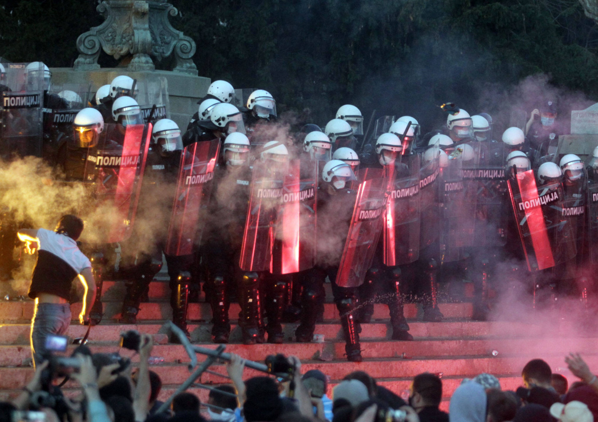 Сотрудники правоохранительных органов были вынуждены применить силу и спецсредства. Протестующие начали бросать в них камни и бутылки. В конечном итоге беспорядки переместились в центр Белграда. В результате происшествия было разбито множество витрин и опрокинуты мусорные баки. Также митингующие сожгли один полицейский фургон, сообщает «Политика Сегодня».