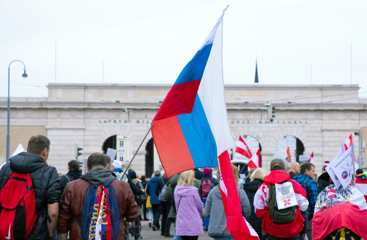 Участники марша несли австрийские флаги, плакаты с призывами к миру и требованием прекратить «экономическую войну» против России. У одного из демонстрантов на одежде была нашивка с российским флагом. Протестующие скандировали: «Мир, свобода, нейтралитет!»