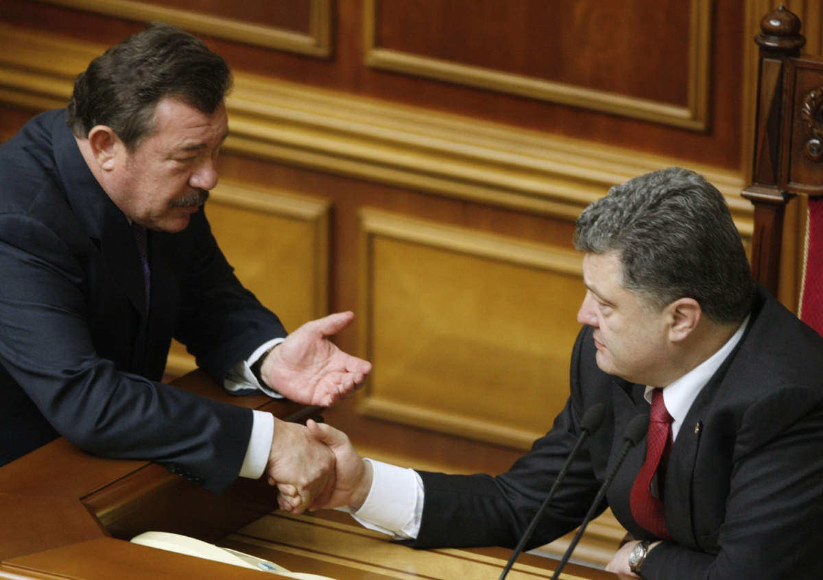 Экс-министр обороны Украины Александр Кузьмук и президент Украины Петр Порошенко (слева направо) на заседании Верховной рады, 2014 год Экс-министр обороны Украины Александр Кузьмук и президент Украины Петр Порошенко (слева направо) на заседании Верховной рады, 2014 год Фото: Никитин Максим / TASS