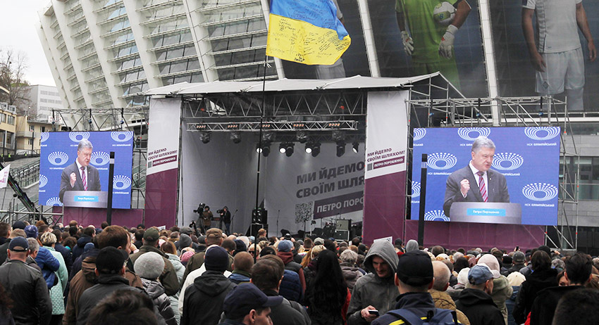 Согласно данным Службы безопасности Украины, на выступление президента страны Петра Порошенко на киевском стадионе «Олимпийский» пришли около 15 тысяч человек.