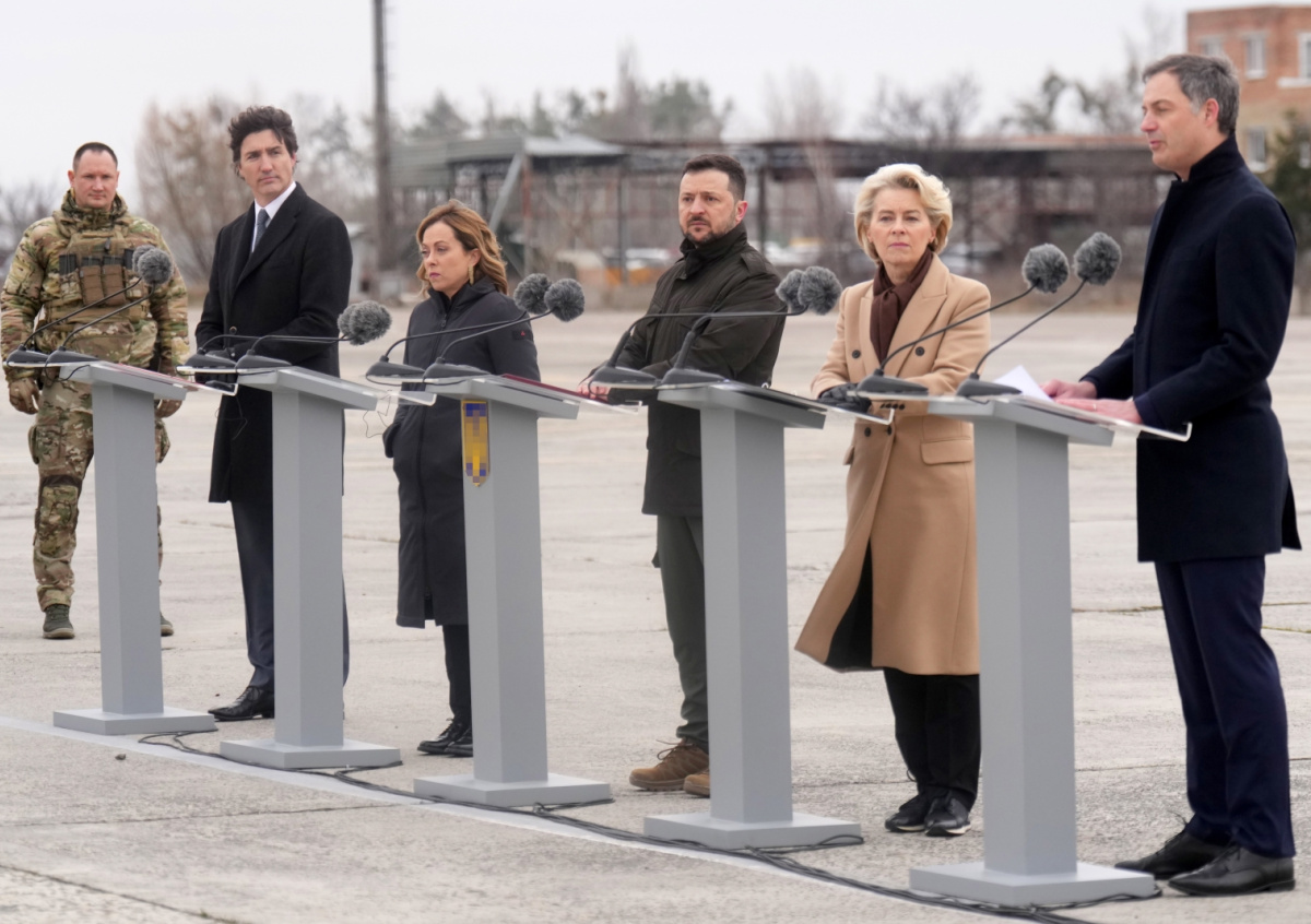 Джастин Трюдо, Джорджа Мелони, Владимир Зеленский, Урсула фон дер Ляйен и Александр Де Кроо Джастин Трюдо, Джорджа Мелони, Владимир Зеленский, Урсула фон дер Ляйен и Александр Де Кроо Фото: Nathan Denette/Keystone Press Agency/Global Look Press