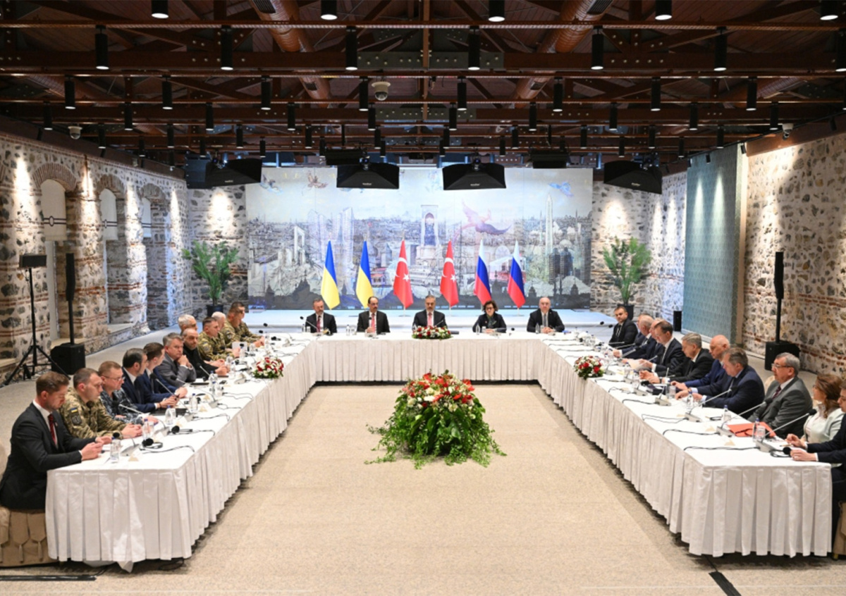 Первый раунд переговорного процесса состоялся во дворце Долмабахче. Процесс продолжался менее двух часов. Россию на переговорах с Украиной в Турции представляет помощник президента РФ Владимир Мединский. Во главе делегации из Киева находится глава Минобороны страны Рустем Умеров.